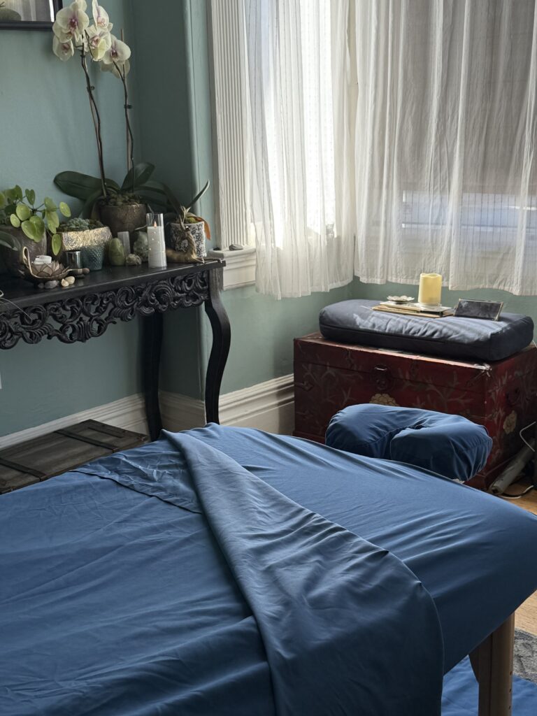 My practice is nestled in the healing spaces of the old Sacred Heart Monastery in Alamo Square, the heart of San Francisco. For 21 years, I have woven together therapeutic deep-tissue methods, like myofascial release, trigger point therapy, joint mobilization, fascia scraping, informed by my B.S. in Kinesiology, and blend them with a flowing Esalen-inspired oil massage to create a wholly relaxing session.
